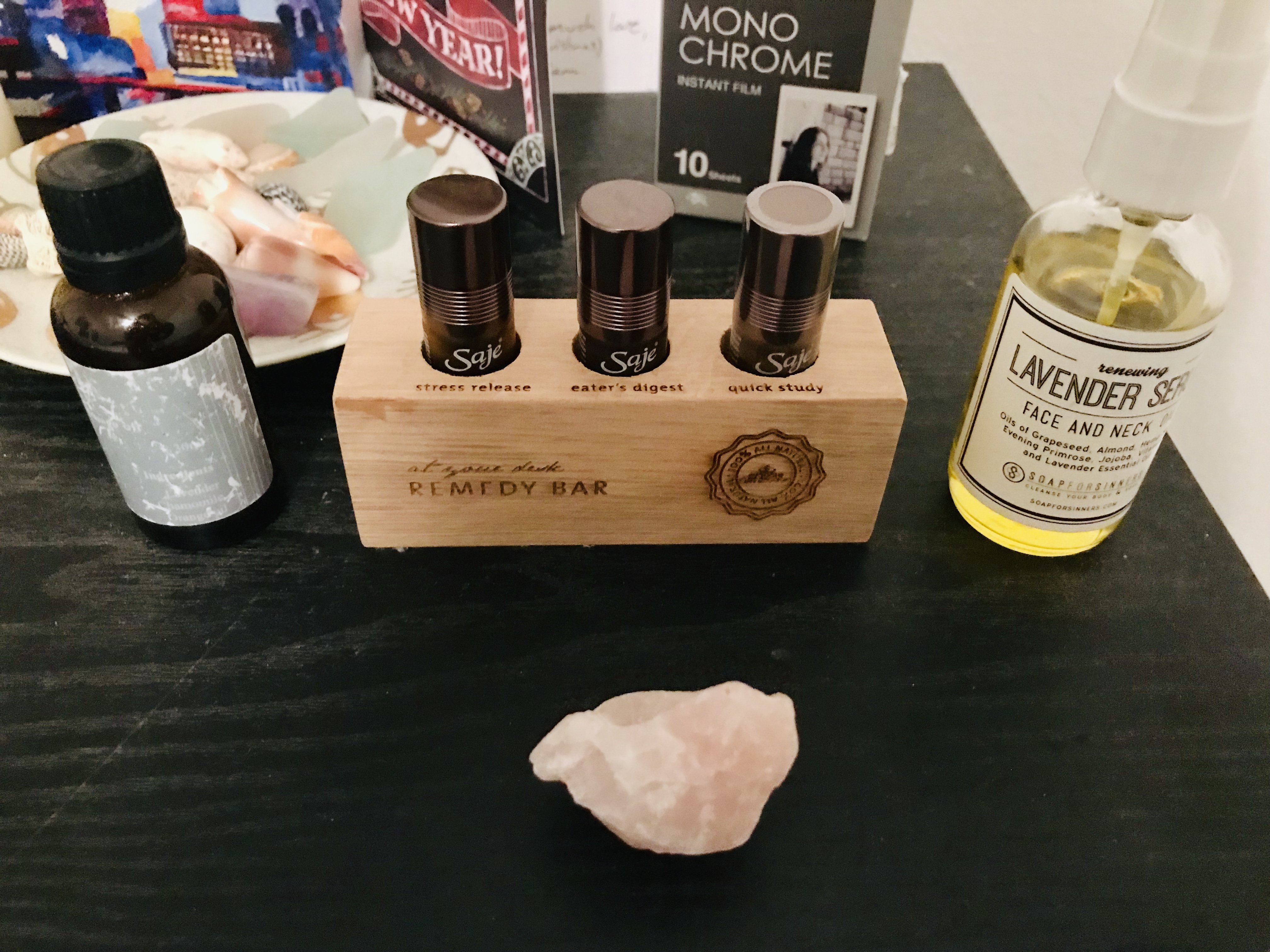 I once took a yoga & essential oils class where I learned about different plants and their specific benefits. I got to mix my own bottle at the end which comprised of: Coconut Oil base, Frankincense Resin, Lime Peel, Sandalwood, and Roman Chamomile Flower. The primary benefits is to help enhance concentration and sustain focus. The pleasing aroma is musky, spicy, and earthy. Apply to the inside of the wrist or palm and rub together and inhale. There are different types of essential oils designed and graded specifically for topical use, diffuser application, or oral use, so please be aware and be cautious of what type you are using. https://www.saje.com/https://www.muji.us/store/health-beauty/aroma-fragrances.html